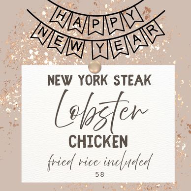 offering steaks, chicken, scallops, shrimp, lobster and of course that OG fried rice. 5 course meal includes Champagne.